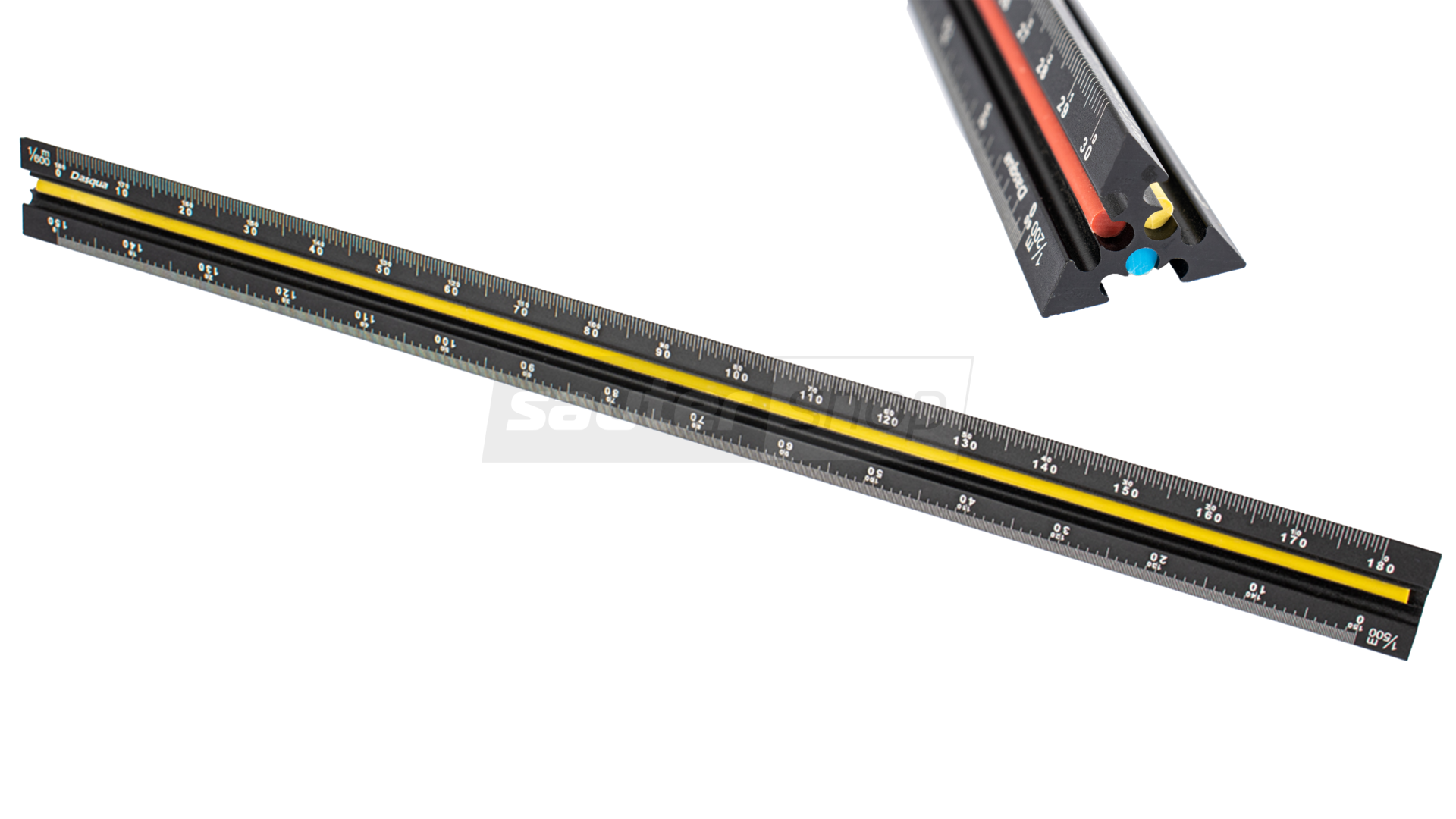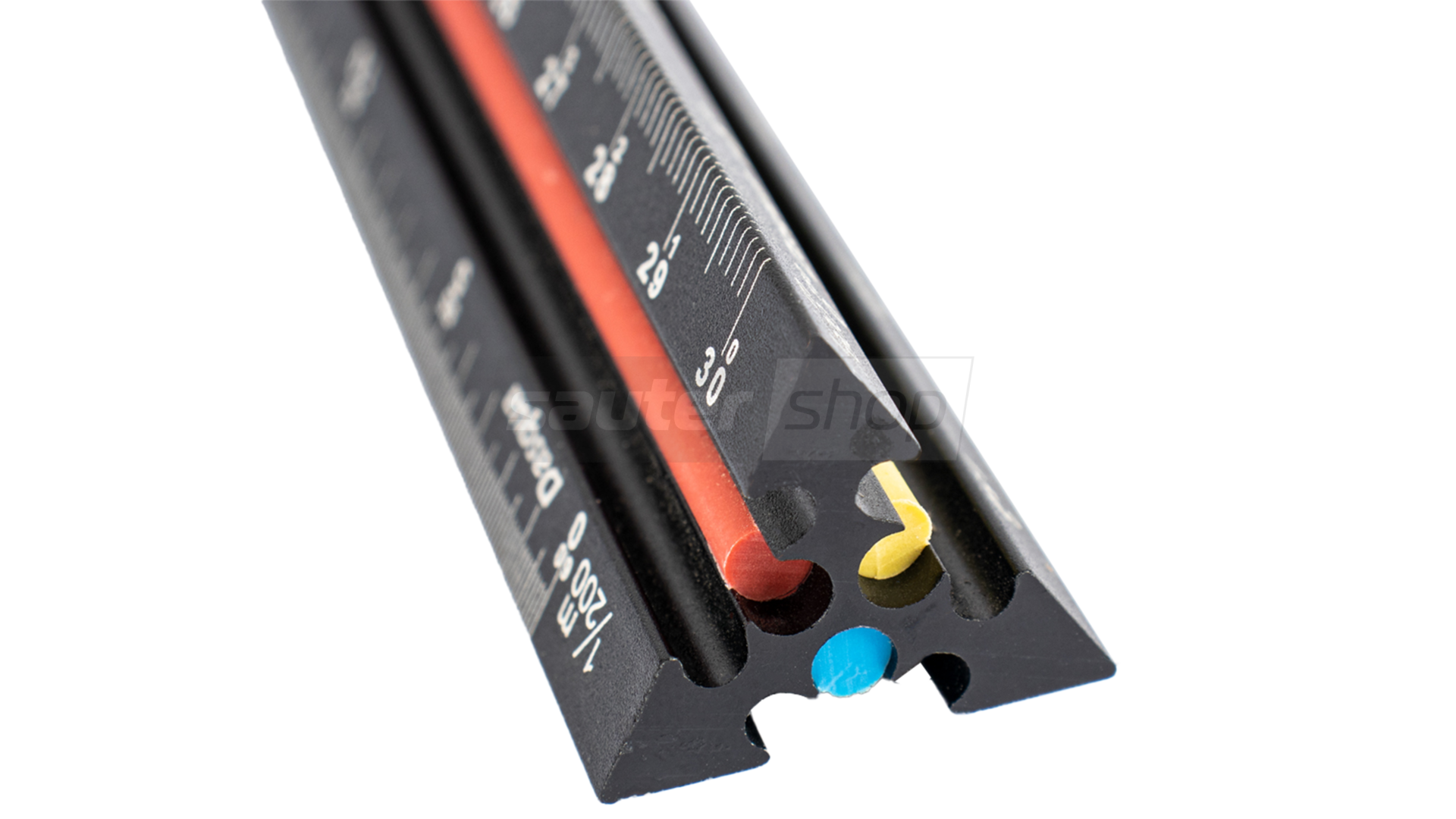 - Dreikantmaßstab in Profiqualität aus hochwertigem, eloxiertem Aluminium.