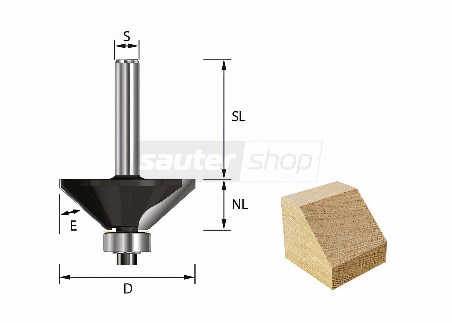 E: 45° l D: 44,5 mm l NL: 15,9 mm l S: 12 mm l SL: 40 mm