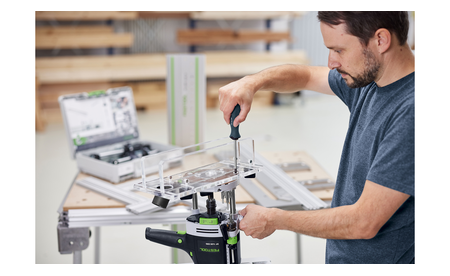 Das Lochreihen-Bohrsystem ist ein umfangreiches Set für die schnelle und einfache Herstellung von Lochreihen für Regalböden, Rückwandbeschlägen und Türbeschlägen mit der Oberfräse OF 1010 oder OF 1400. Alle Komponenten sind in einem einzigen Systainer enthalten, der eine bequeme Lagerung und einen bequemen Transport ermöglicht.