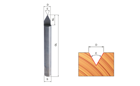 Mit V-Nutfräsern lassen sich Ziernuten sowie V-Nuten in alle Holzarten und Plattenwerkstoffe fräsen. V-Nut und Schriftenfräser können gut zum Anfasen von Harthölzern und Plattenwerkstoffen eingesetzt werden. Aus Vollhartmetall (VHM) gefertigt.