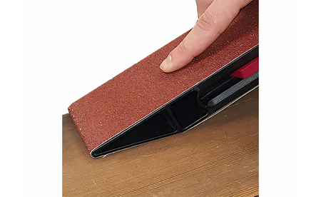 - Verwendbar mit gängigem Bandschleifpapier mit den Maßen 65 x 410 mm