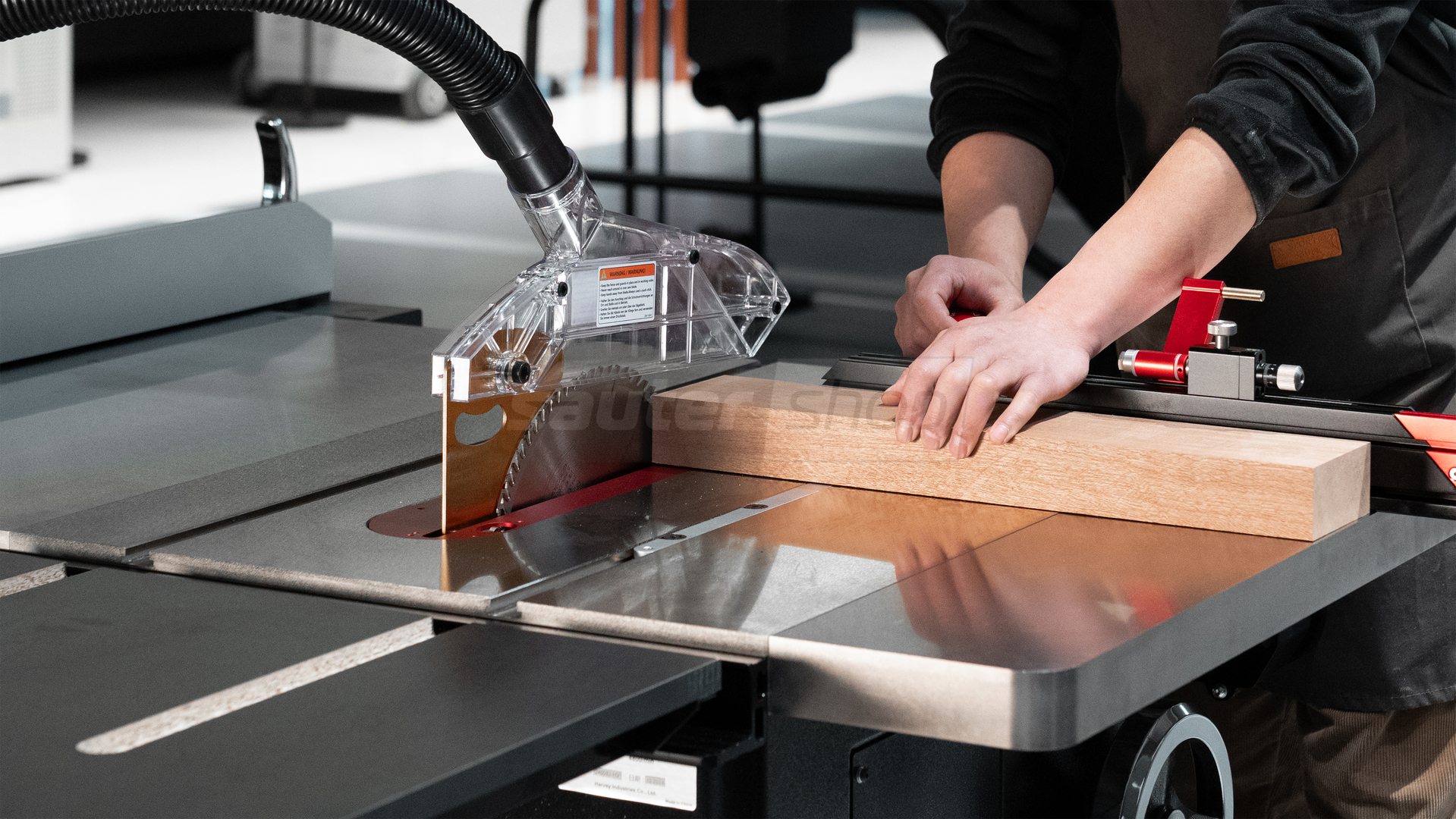 - 1x Harvey Tischkreissäge ALPHA HW110SE-36T (inkl. Big Eye Schnittanschlagsystem u. MG-36PRO Gehrungs-Winkelanschlag)