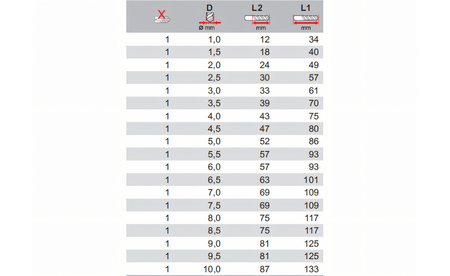 - Durchmesser: 1,0 - 10,0 mm (0,5 mm Abstufung)