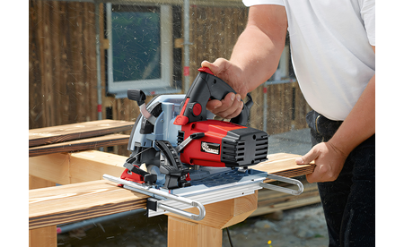 - Die Handkreissäge für Längs- und Querschnitte, Tauchschnitte und Schrägschnitte bis 45°