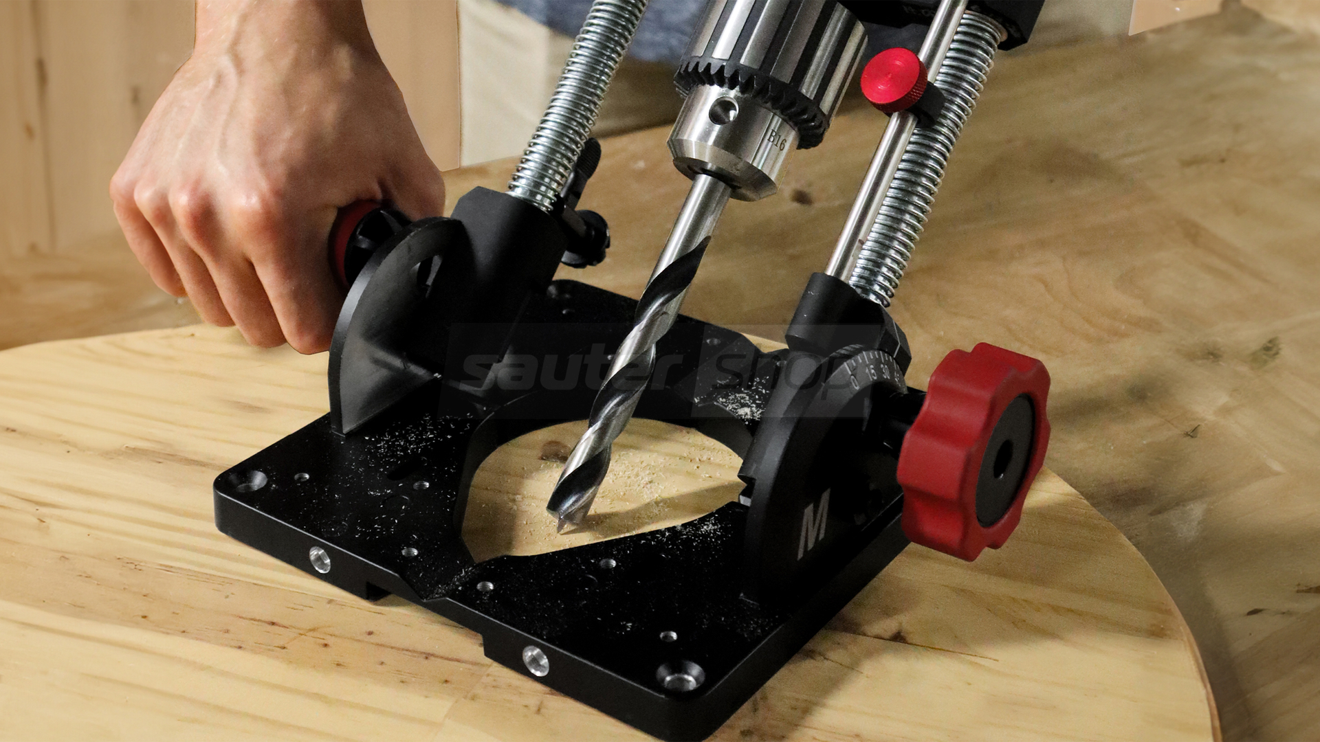 - Zentrierscheibe zum präzisen Einstellen des Bohrmittelpunkts.