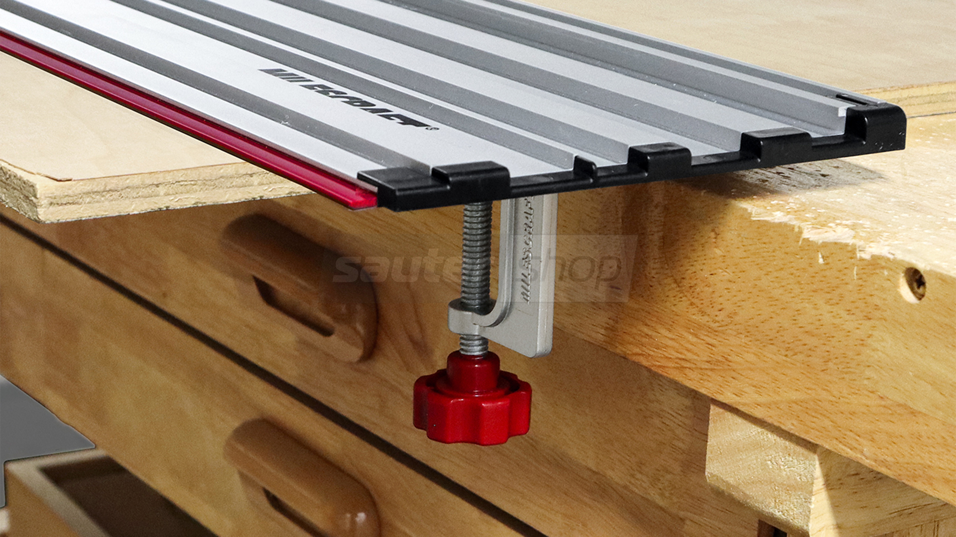 - Die Führungsschiene verhindert Absplitterungen und Splitterbildung und verringert das Verrutschen auf dem Werkstück.