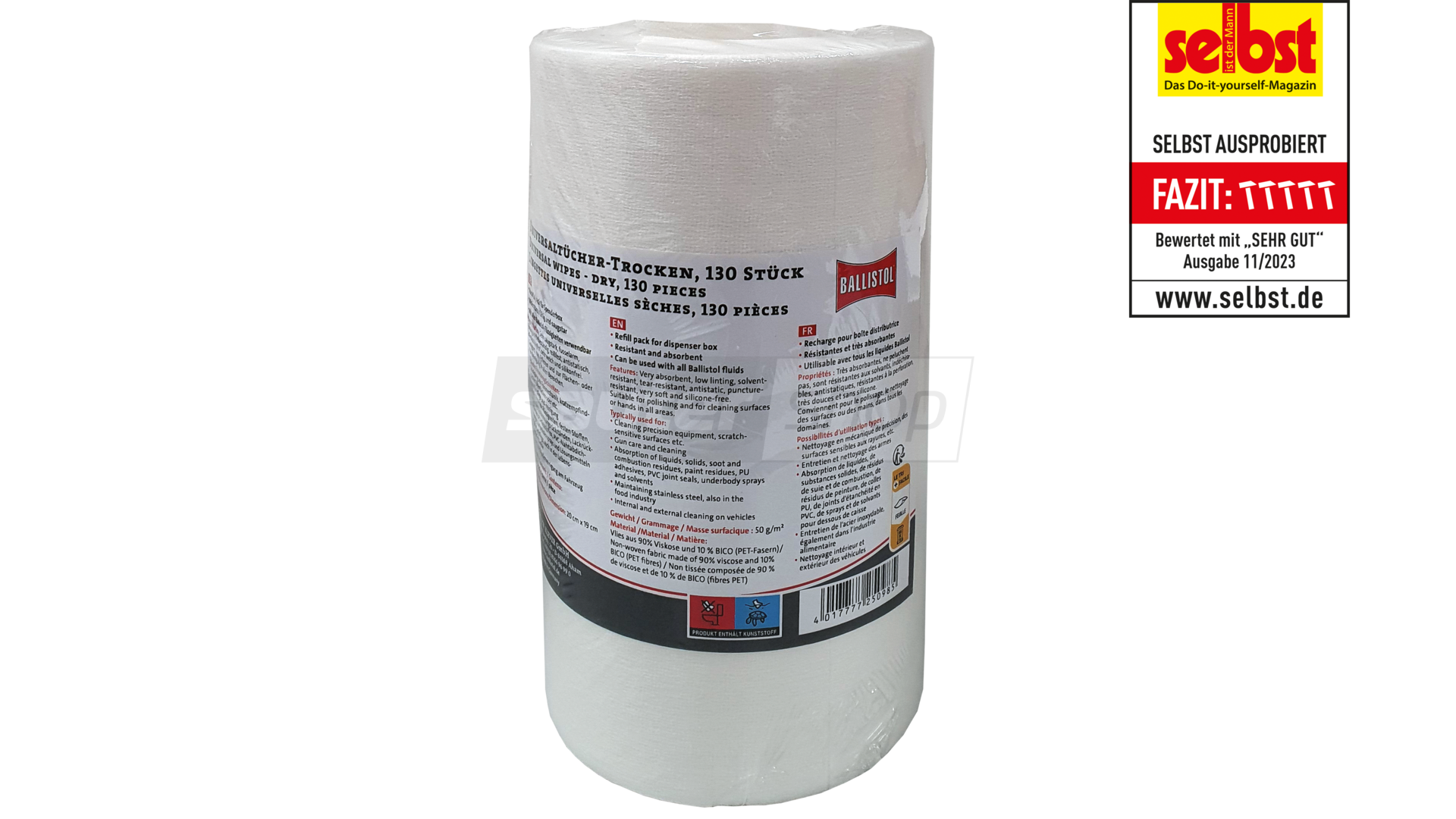 - Weich, saugstark, fusselarm, lösungsmittelbeständig, antistatisch und durchschlagfest.