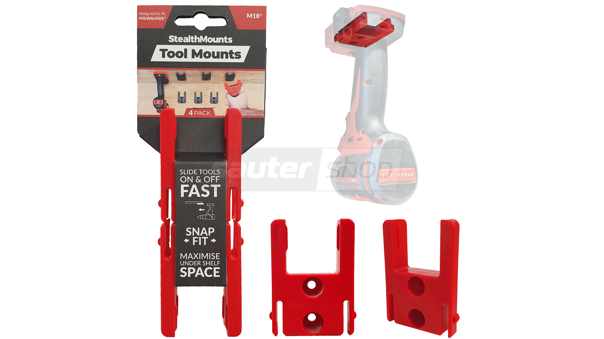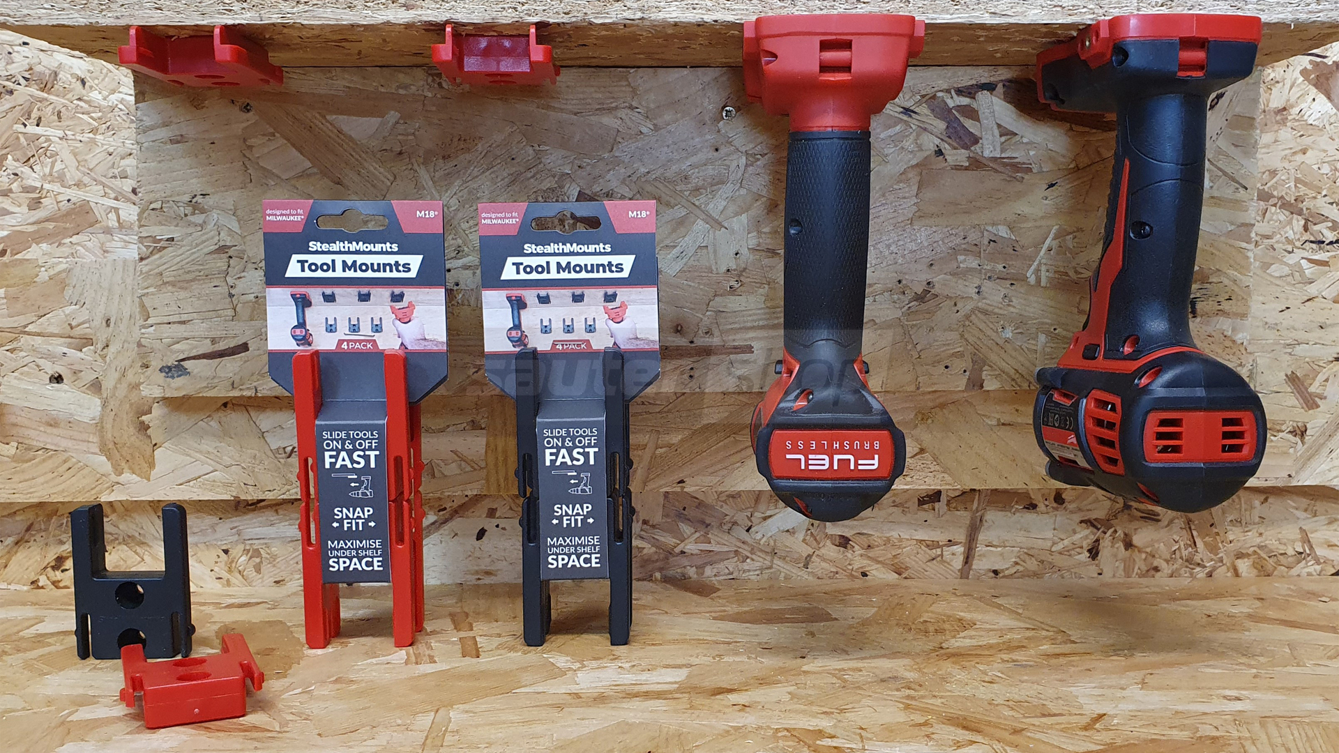 - Rote StealthMounts Werkzeughalterungen für Milwaukee M18, 4 St.
