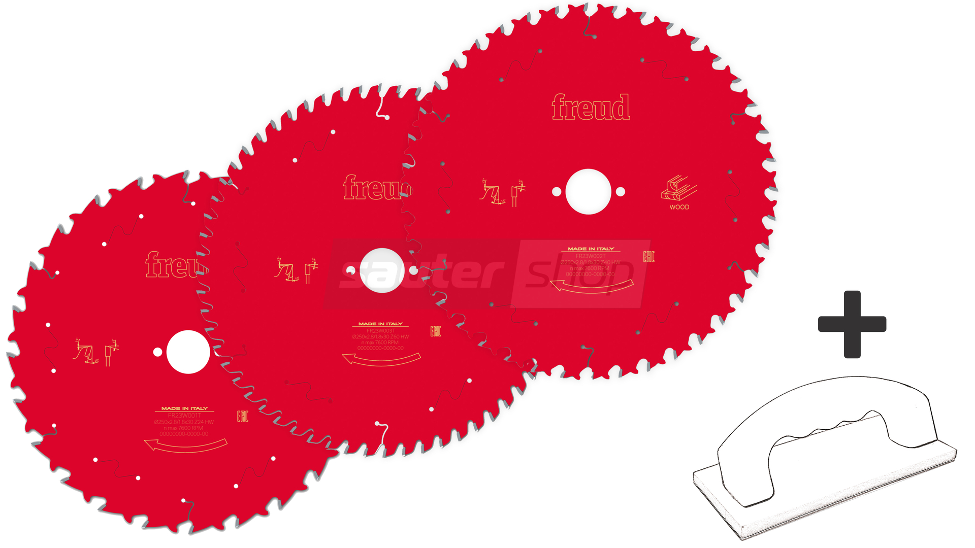 - Sägeblätter 3er-Set 250x30 + Werkstückschieber GB-1