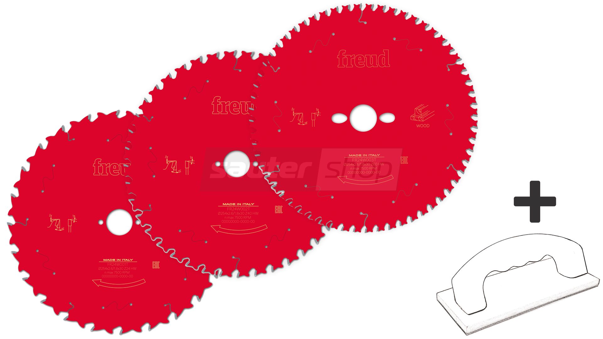 - Sägeblätter 3er-Set 254x30 + Werkstückschieber GB-1