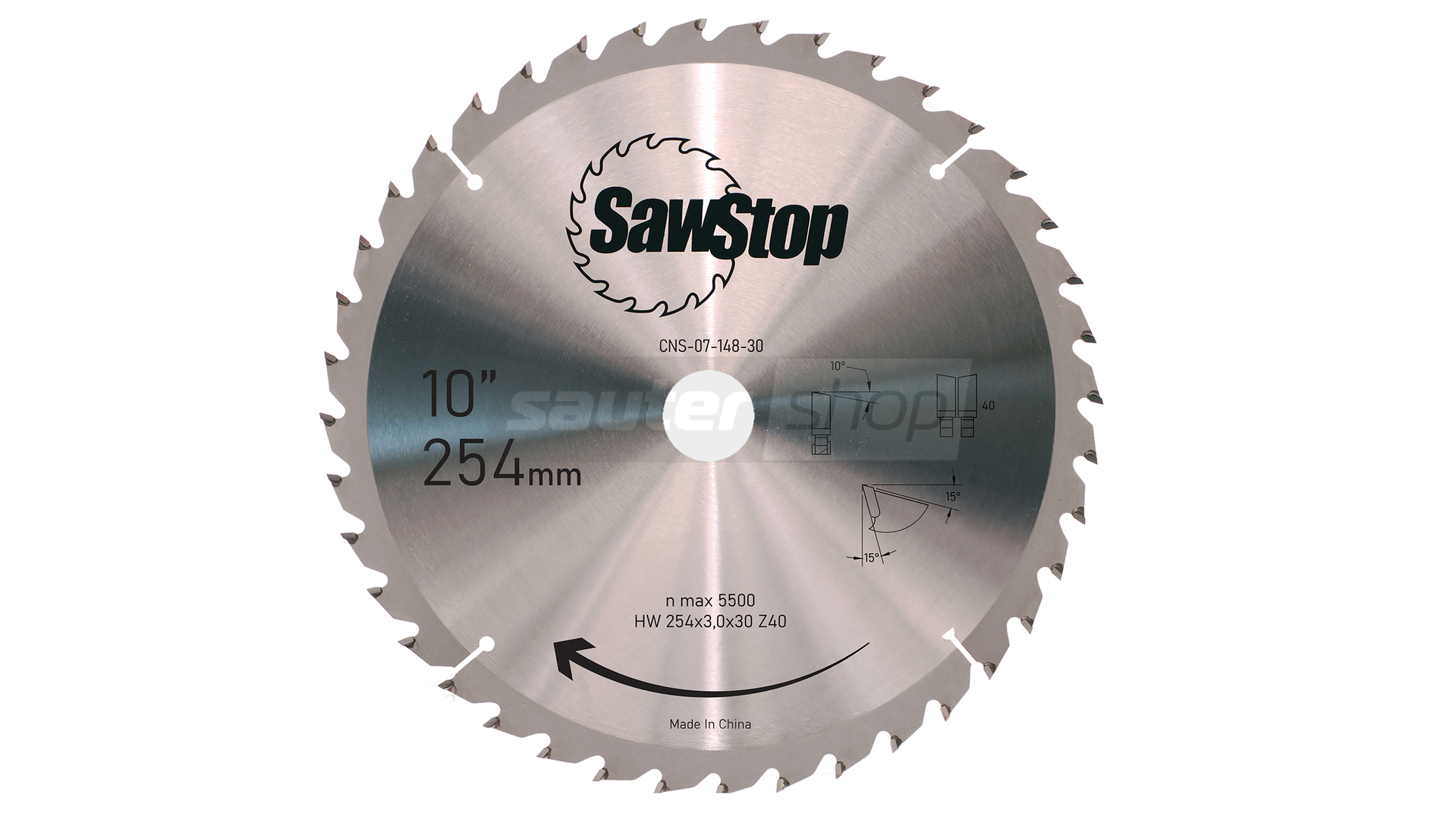 - 1x SAWSTOP Sägeblatt 254x3,0/2,0x30, WZ=40