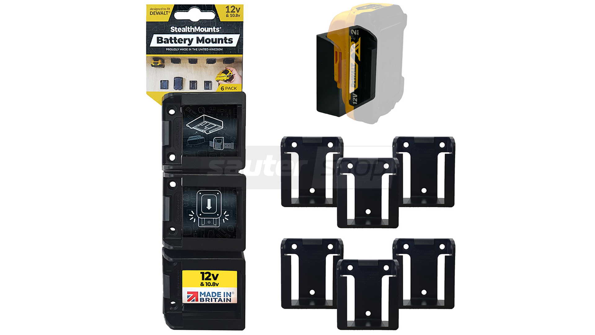 - Schwarze StealthMounts Akkuhalterungen für DeWalt 12V, 6 St.