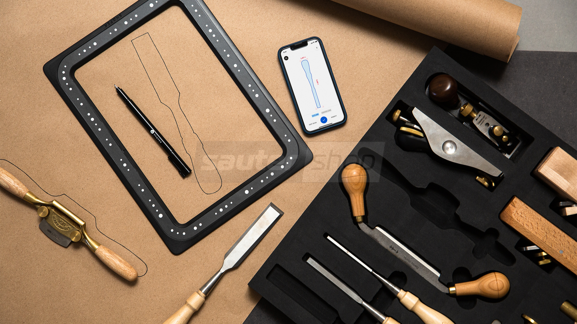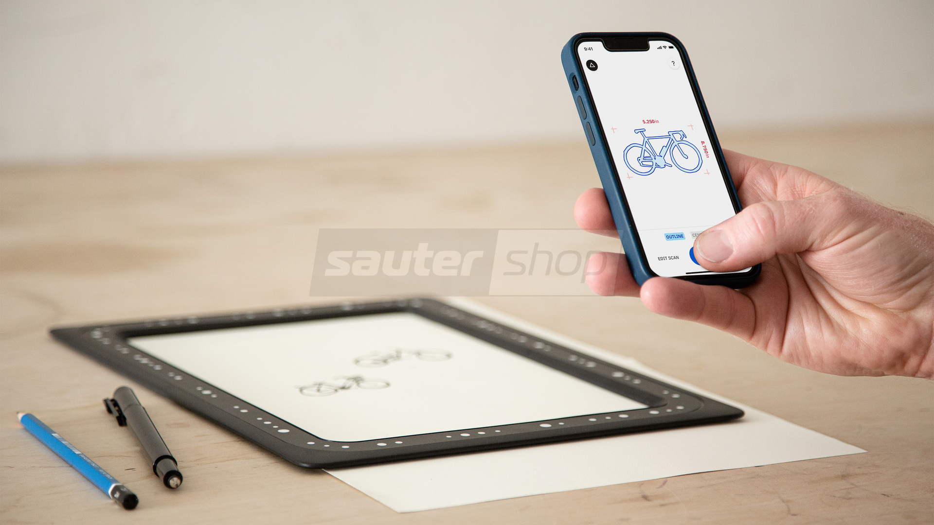 Shaper Trace, ein Zeichen-Toolkit, mit dem du jede Skizze oder Zeichnung in eine Vektorgrafik verwandeln kannst, indem du einfach ein Foto machst. Lege den Trace-Rahmen über deine Skizze und wandle sie mit der Trace-App in eine skalierbare Vektorgrafik (SVG) um, die du mit dem Werkzeug deiner Wahl weiterverarbeiten kannst, von Lasercuttern und Folienschneidern bis zu CNC-Maschinen und mehr. Mit Trace musst du nicht mehr eine perfekte Draufsicht fotografieren und sie dann in einer Designsoftware korrigieren. Einfach zeichnen, erfassen und erstellen.
